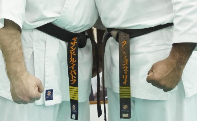 Как и в большинстве воинских искусств Японии, в киокушинкай карате различают ученические (кю) и мастерские (даны) степени. В киокушинкай десять кю (от 10-го до 1-го) и десять данов (от 1-го до 10-го). Каждой степени соответствует пояс определённого цвета с одной или несколькими поперечными полосками (или без них), нашитыми на правый конец пояса. Данам соответствует чёрный пояс. На него нашиваются жёлтые (золотые) полоски, число которых соответствует дану (от 1-го до 9-го). Десятому дану соответствует красный пояс.